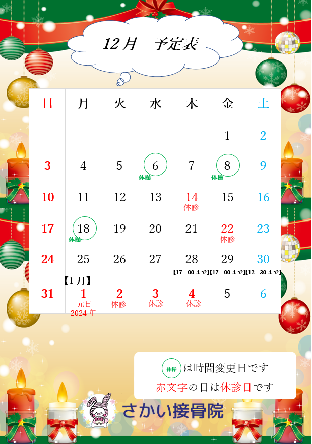 30日(土) 通常の土曜日と同じ12時30分 までの診療になります。