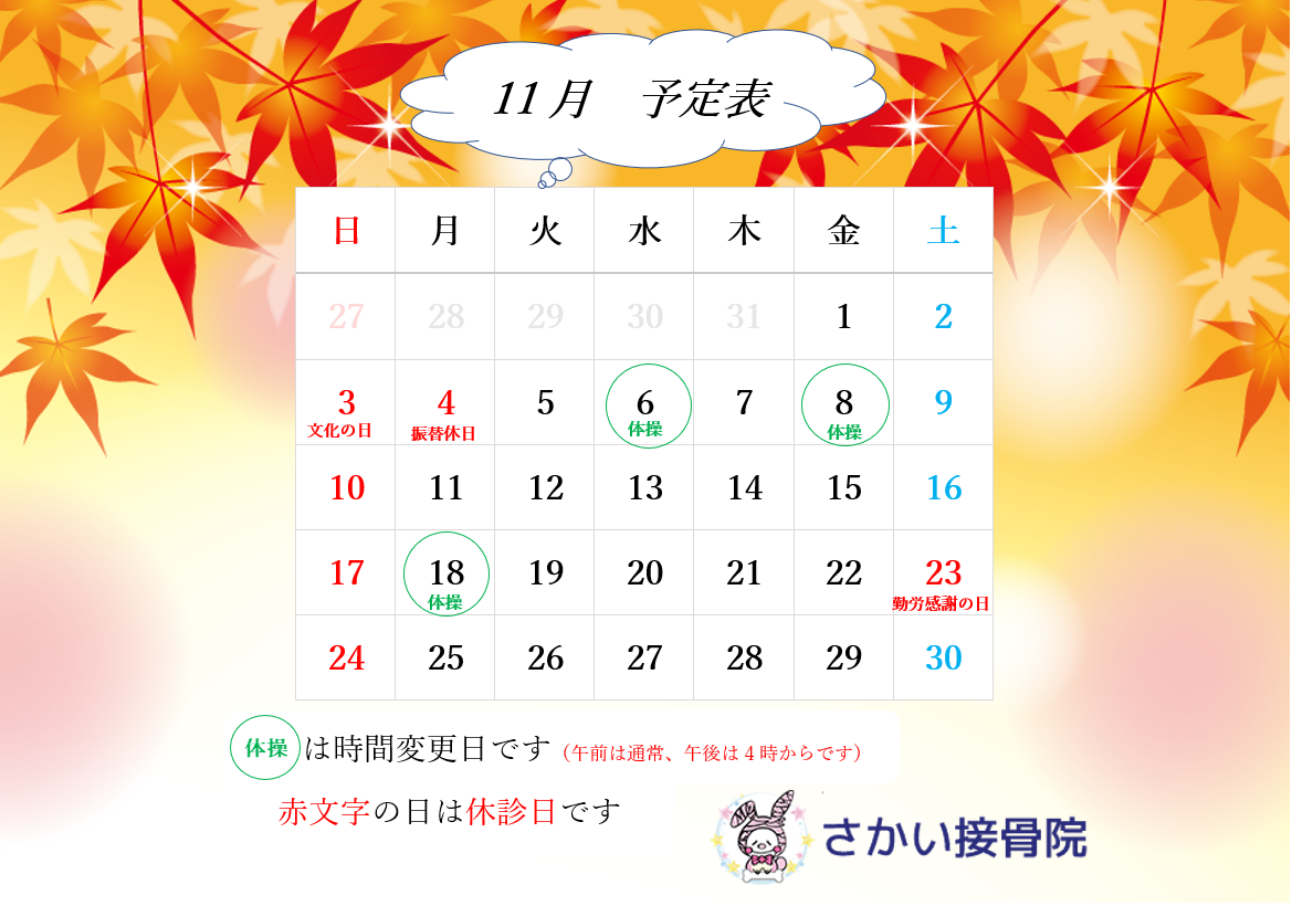 6日(水)・8日(金)・18日(月) は体操教室のため午後の診療が