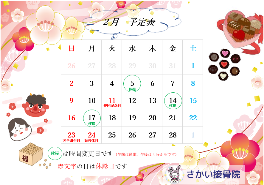 2月診療時間変更のお知らせ