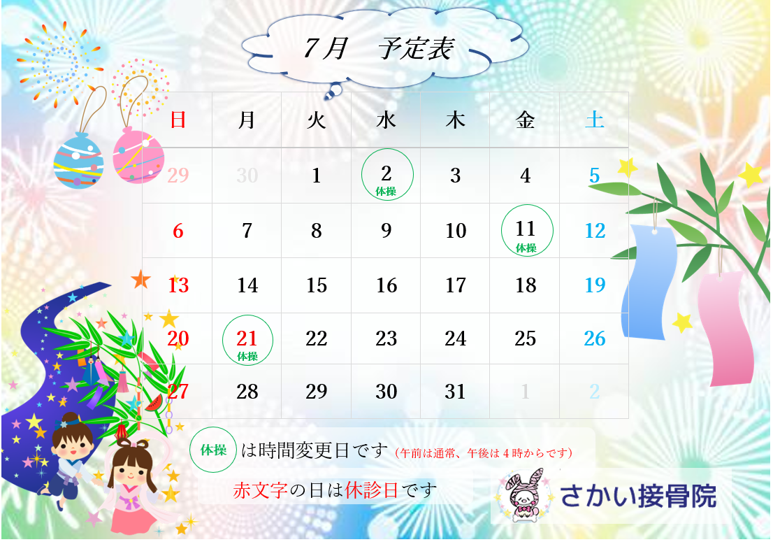 7月診療時間変更のお知らせ