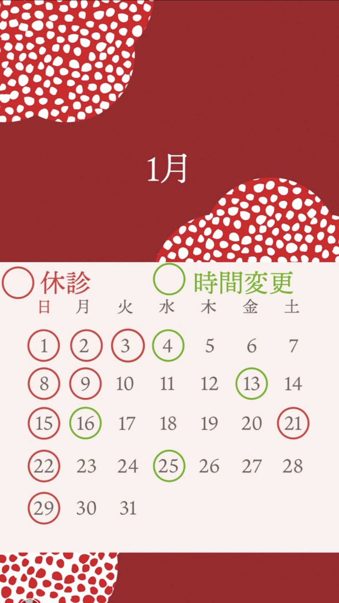 1月診療時間変更のお知らせ