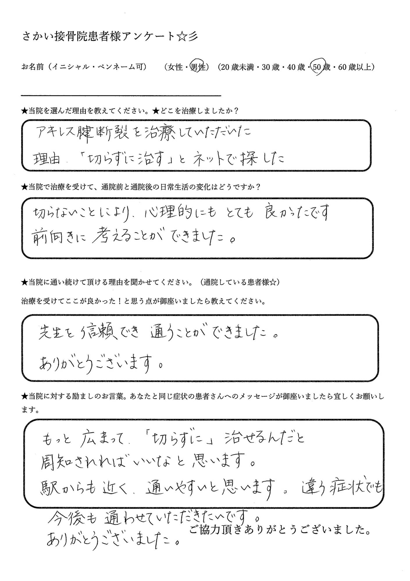 - アキレス腱断裂の治療していただいた。